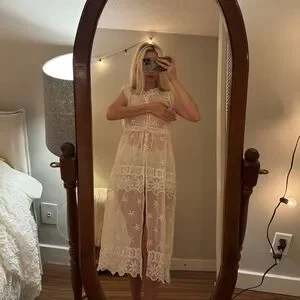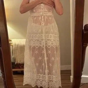 Delicate lace chemise with intricate patterns. Soft and elegant design. Ideal for a cozy night in.