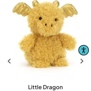 Charming dragon plush with soft, golden yellow fur. Perfect for snuggles and playtime. A delightful friend for any child.