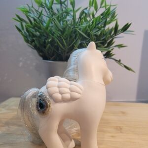 Charming white pony figurine with a shimmering silver mane. Features a decorative jewel accent.