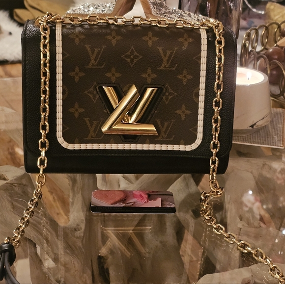 Elevate your style with this luxury Louis Vuitton designer women's bag. Featuring a sophisticated black and gold design, this bag is perfect for any occasion. The elegant chain strap adds a touch of glamour to your ensemble.