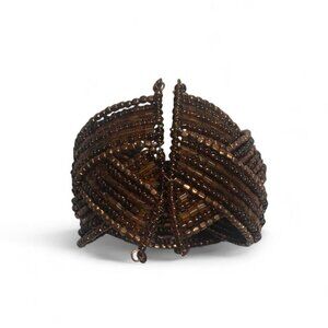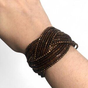 •Y2K boho brown beaded braided cuff bracelet⁺⋆☾☼⋆⁺