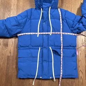 Used in great condition. Hem drawstring has been removed. Small spot on the right rear elbow.