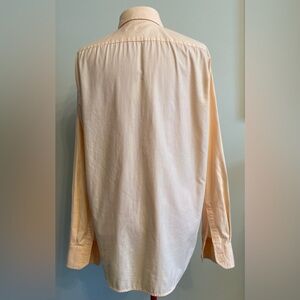 Cotton dress shirt peach/ pastel orange with subtle stripe detail.