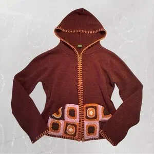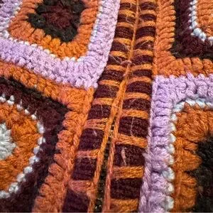 vintage fox cozy crochet granny square hoodie (tagged size 1 fits s-m)