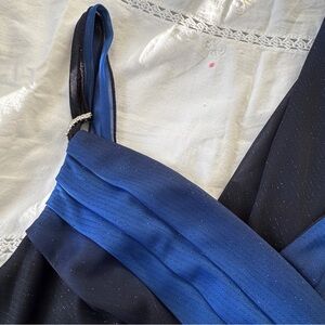 vintage jessica y2k blue black ombré mesh rhinestone dress (fits M-L)