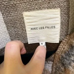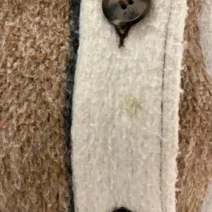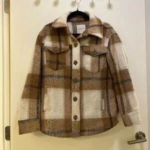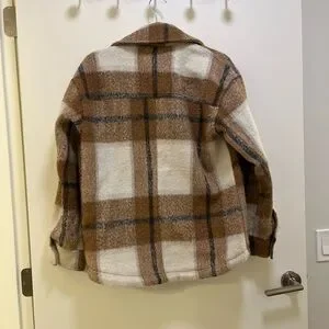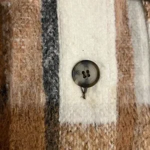 Chic plaid jacket with button front. Features warm brown and cream tones. In good condition, tiniest stain as pictured that I cannot see unless I look hard for it. Have gotten so many compliments on this coat.