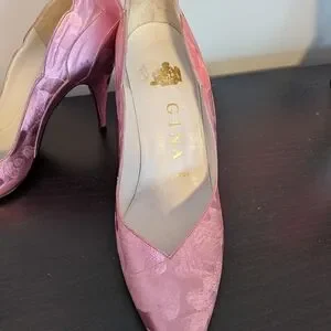 Elevate your look with these stunning pink satin floral heels from Gina London. Perfect for adding a touch of elegance to any outfit.