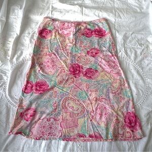 vintage y2k vamp cottagecore pink floral cotton midi skirt (size s)