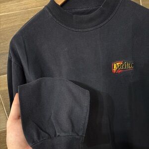 Vintage Doritos Embroidered Faded Navy Mock Neck Long Sleeve T Shirt Size Medium