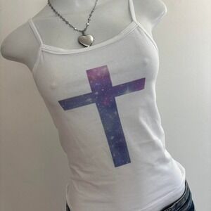 white galaxy cross spaghetti strap cami