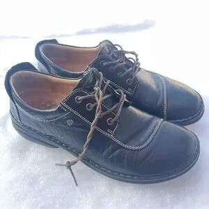 Elegant black leather oxfords with sturdy laces. Ideal for formal and casual wear.