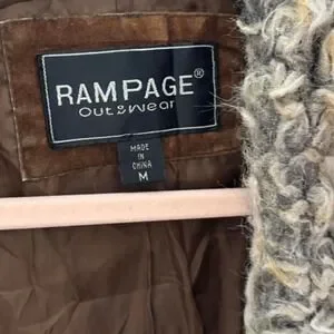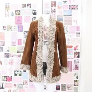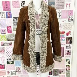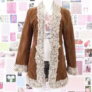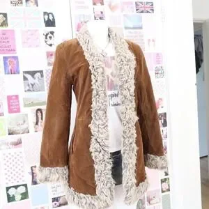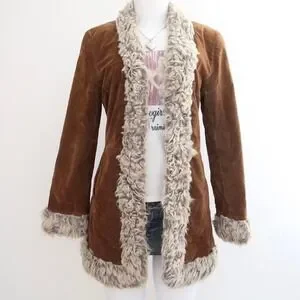 vintage rampage brown faux suede fur trim coat size medium
