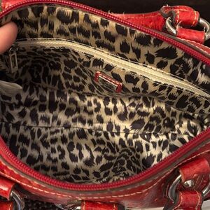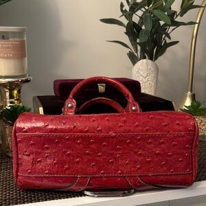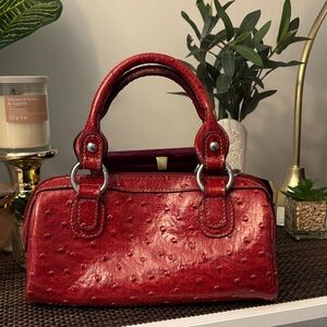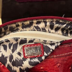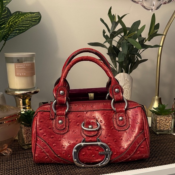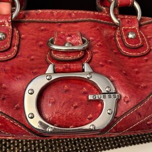 Chic red satchel by Guess. Features striking silver hardware. Ideal for stylish outings.