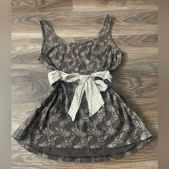 So cute and flowy brown floral babydoll cami with a delicate bow detail 🎀✨