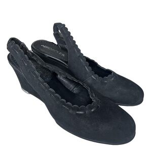 !SOLD! AEROSOLES Black Leather Slip On U Point Low Heel Wedge Shoes size 6