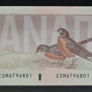 Two first year issues of the one (1987) and two (1996) dollar coins made to replace those bills are also present.