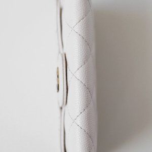 SOLD Chanel Quilted Caviar Leather Small Flap Card Holder in Cream & Gold HW