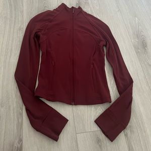 Lululemon cropped define jacket in the fabric Nulu (extremely soft) in size 2. Colour name is Red Merlot.