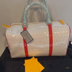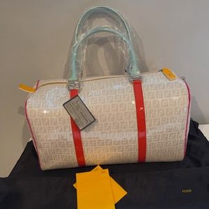 SOLD Fendi Ivory Grey Sequin Multicolour Patent Detail Boston Bag (New)