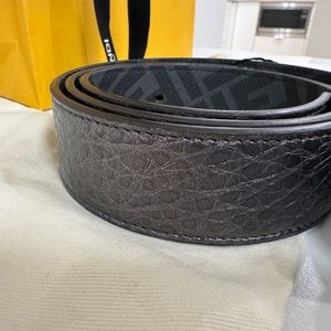 Reversible belt with FF buckle and stud fastening can be worn on either side.
