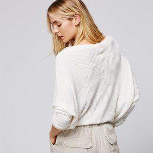 Free People Mercury Drippy Thermal Top Dolman Wide Boat Off the Shoulder Sweater Neck Oversized Slouchy Boho Waffle Knit