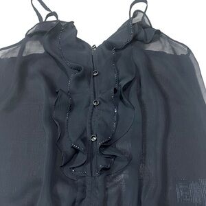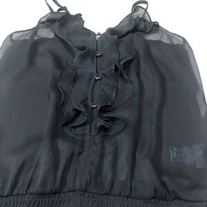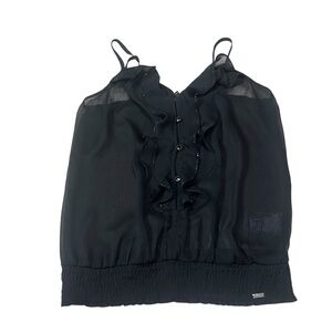 !SOLD! GUESS Black See Through Sleeveless Top size Medium Ruffled Chest Ruched