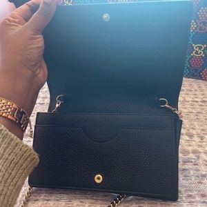 Black Gucci wallet on chain in great condition! It has a few compartments inside which is super convenient. There is compartment with a zipper and there is also a section with 6 card slots. It’s full leather. The strap is a chain and is gold. There is a leather shoulder attachment which makes it super comfortable. I’ve also included a separate pewter coloured chain strap that I’ve used in the past when I want a more understated look. This can be dressed up or down and goes with everything! ❤️ P.S. The bag, box and tags are all in perfect condition and will be included.