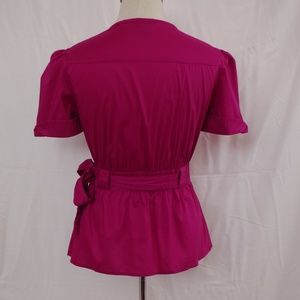 SOLD H&M Magenta Cotton Blend Short Sleeve Wrap Shirt- Sz. 10