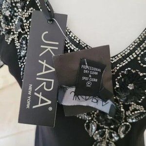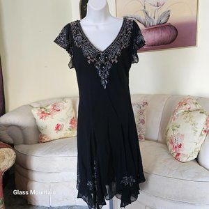SOLD - JKara Cocktail Dress With Silver Beading Hanky Hem & Flutter Sleeves