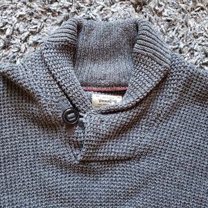 Never been worn elegant grey knit sweater with gorgeous button shawl collar.