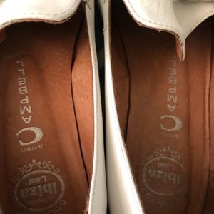 These Jeffrey Campbell shoes are white leather with a dapper tailored look, leather lining and synthetic sole.