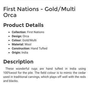 Hand tufted wool rug from Jordans Flooring. Part of their First Nations collection, orca design.