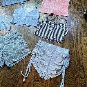 SOLD- LOT OF MIXXED CROP TOPS WITH 2 SHORTS SIZE SMALL XS