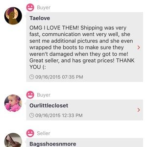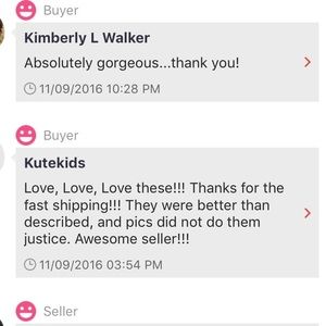 Just sharing what I sold on other apps. Please feel free to shop with confidence on my page! I am a very honest seller. I would not want it to happen to me so why do it to you by being dishonest. Everything in my listing I try to describe to the T. I shared some feedback from buyers on another app. I have 313 great 5star rating. 💁🏻