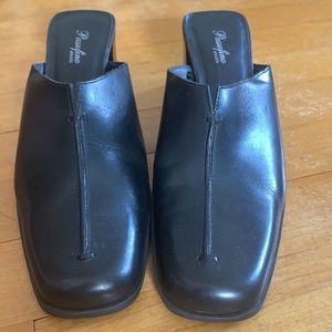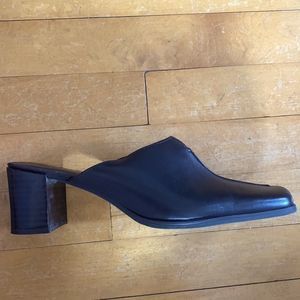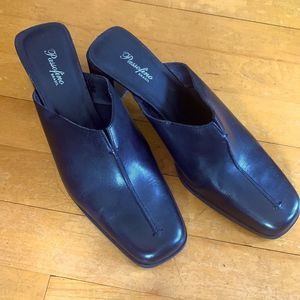 SOLD Leather Vintage chunky heel Mules black squared toe passofino brazil size 8