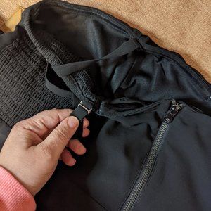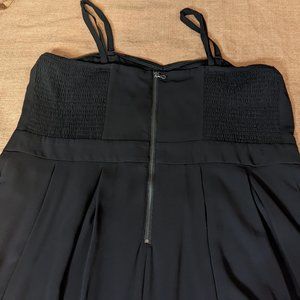 Neo Noir swing-type dress. Fully lined, beautiful subtle design in the bust area. Can be worn strapless or with straps. Waist is 22" with no stretch but bust has stretch panels in the back. Zippered.