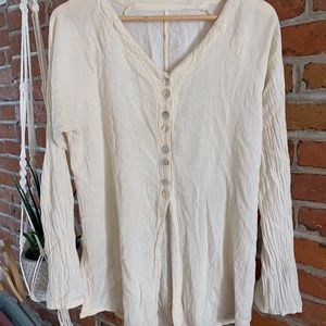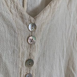 This top features beautiful authentic shell buttons and was purchased at a local boutique here on the west coast!