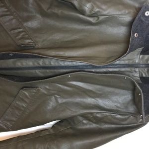 SOLD - M0851 - Canadian Made - Waxed Leather Wool Lined Coat