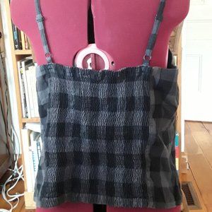 Black and grey checked cotton tank tap by MXM. Size 16. Elastic gathering in the back. Ruffles in front with decorative buttons.