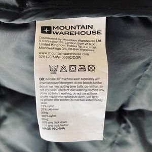 Down-filled, water resistant grey winter jacket by Mountain Warehouse. Pre-loved in excellent condition. Size 14US.