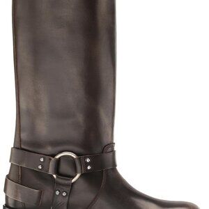 The BROCKS knee boot features the wide profile of an engineer boot with harness and buckle hardware adding an industrial edge and giving the design an adjustable fit.