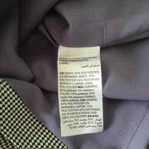 Skirt: 72% polyester/ 24% rayon/ 4% spandex.