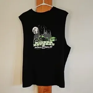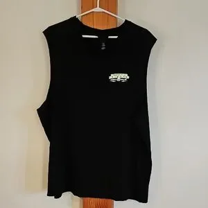 Stylish black tank top. Features a unique graphic design. Perfect for casual wear.