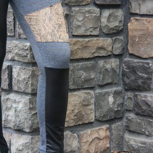 These were a top, hot seller at trade shows. Only a few left! Use to retail for $32. Grey lightweight cotton blend leggings with color blocks in Black Faux leather and taupe reptile print with faux zippers. These are lightweight, but not see through if you stick to the size guides Small - Fits 0 - 2 waist unstretched: 26 inches Rise 9 inches Inseam: 27 inch
