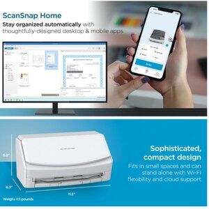 ScanSnap iX1600 Wireless or USB High-Speed Cloud Enabled Document, Photo & Receipt Scanner with Large Touchscreen and Auto Document Feeder for Mac or PC, White