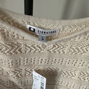This Signature tank top is a stylish addition to any wardrobe, featuring a sleeveless design and a ribbed texture. The cream color and cropped style make it perfect for layering or wearing on its own. Enjoy the comfort and chic look of this versatile top.