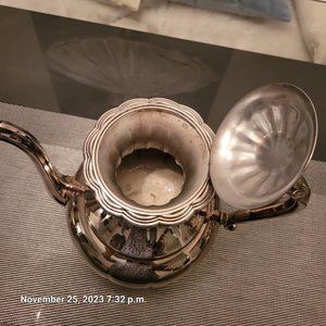 Primrose Silver Plated Set of Coffee Pot, Sugar Bowl and Creamer.  Used, very good pristine condition.  Exterior very shiny with a few very small spots. Coffee pot has a scratch on the handle and inside a few water mark (see pictures). Made in Canada.