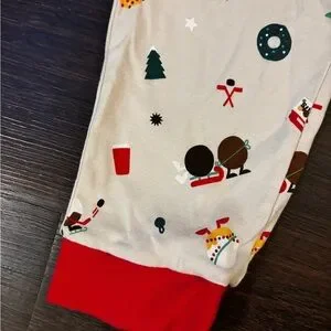 Celebrate the season with this festive men's pajama set Featuring a playful holiday pattern on a beige background with vibrant red accents, it's perfect for adding a touch of cheer to your wardrobe.
