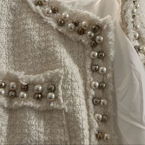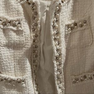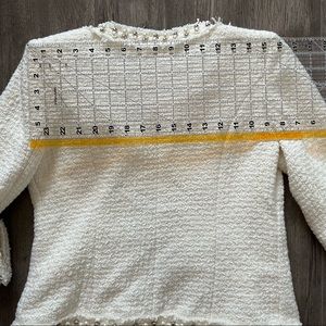 Elegant, timeless and classy cream-coloured tweed jacket in size small. Fits slightly big - I’m normally an XS but wanted something that I could wear with layers underneath. In great condition, no flaws to note. Worn once.
