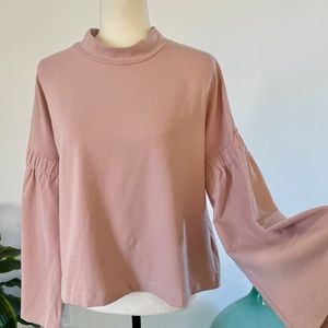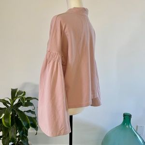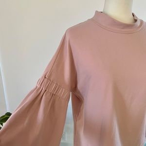 *SOLD* Super soft & cozy mock neck sweater. Flowy bodice, fun full sleeve gathered above elbows. Soft dusty pink